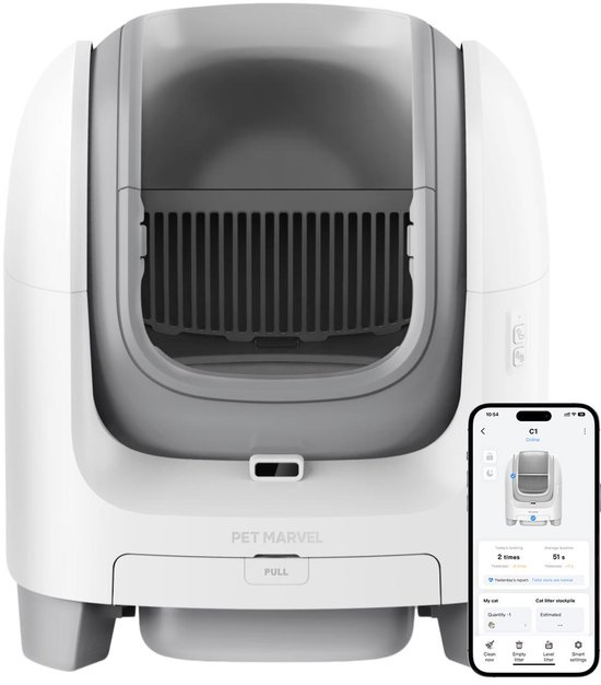 Deze automatische kattenbak is een uitstekende keuze voor wie comfort en functionaliteit wil combineren. Je kunt via de app eenvoudig schoonmaakstanden selecteren en de gezondheid van je kat monitoren. Het model wordt standaard geleverd met een rol vuilniszakken en een geurcontrolebox, zodat je meteen compleet bent. Dankzij het royale formaat en het open ontwerp is de bak gebruiksvriendelijk en geschikt voor alle kattenrassen.